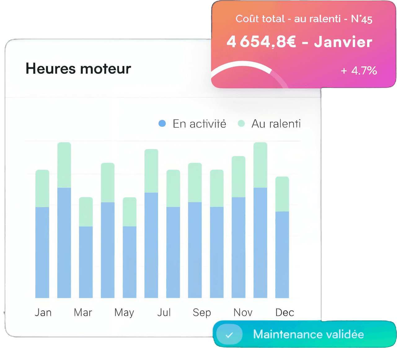 Analyze each machine's activity: active engine hours, periods of excessive idling, and use outside authorized hours. This level of precision allows you to optimize your fleet, improve TCO, and proactively plan your resources to reduce the operating costs of your construction equipment fleet.